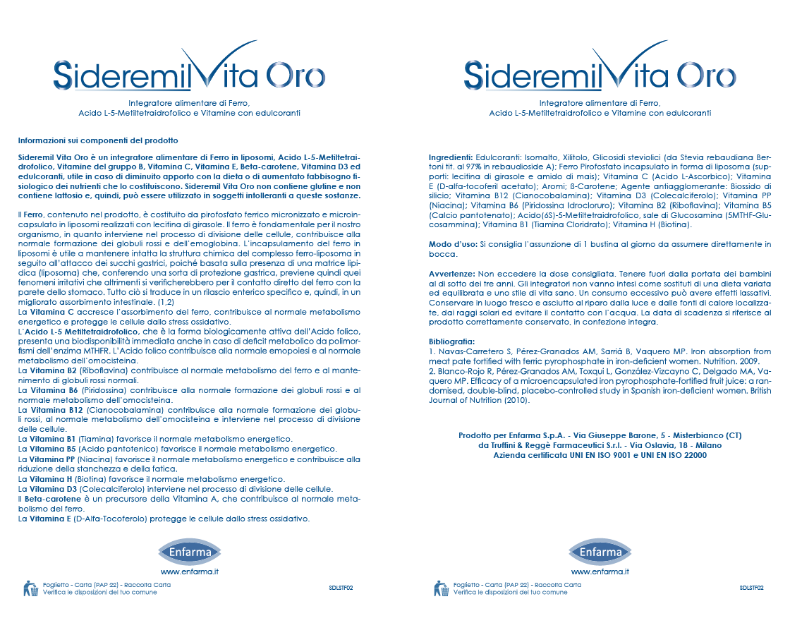Ricorda che Sideremil Vita Oro è disponibile Online, in farmacia e parafarmacia.